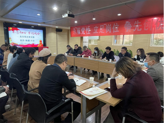 2021 年 12 月 24 日,東方華太黨支部黨員(換屆)大會暨 12 月份支部主題黨日集體學(xué)習(xí)會議在公司 309 會議室順利召開。大會主題為“永葆黨性、立足崗位、爭先創(chuàng)優(yōu)”上級黨工委江漢二橋街道黨工委指派黨建指導(dǎo)員一行兩人和公司總經(jīng)理蒞臨到會指導(dǎo)。
