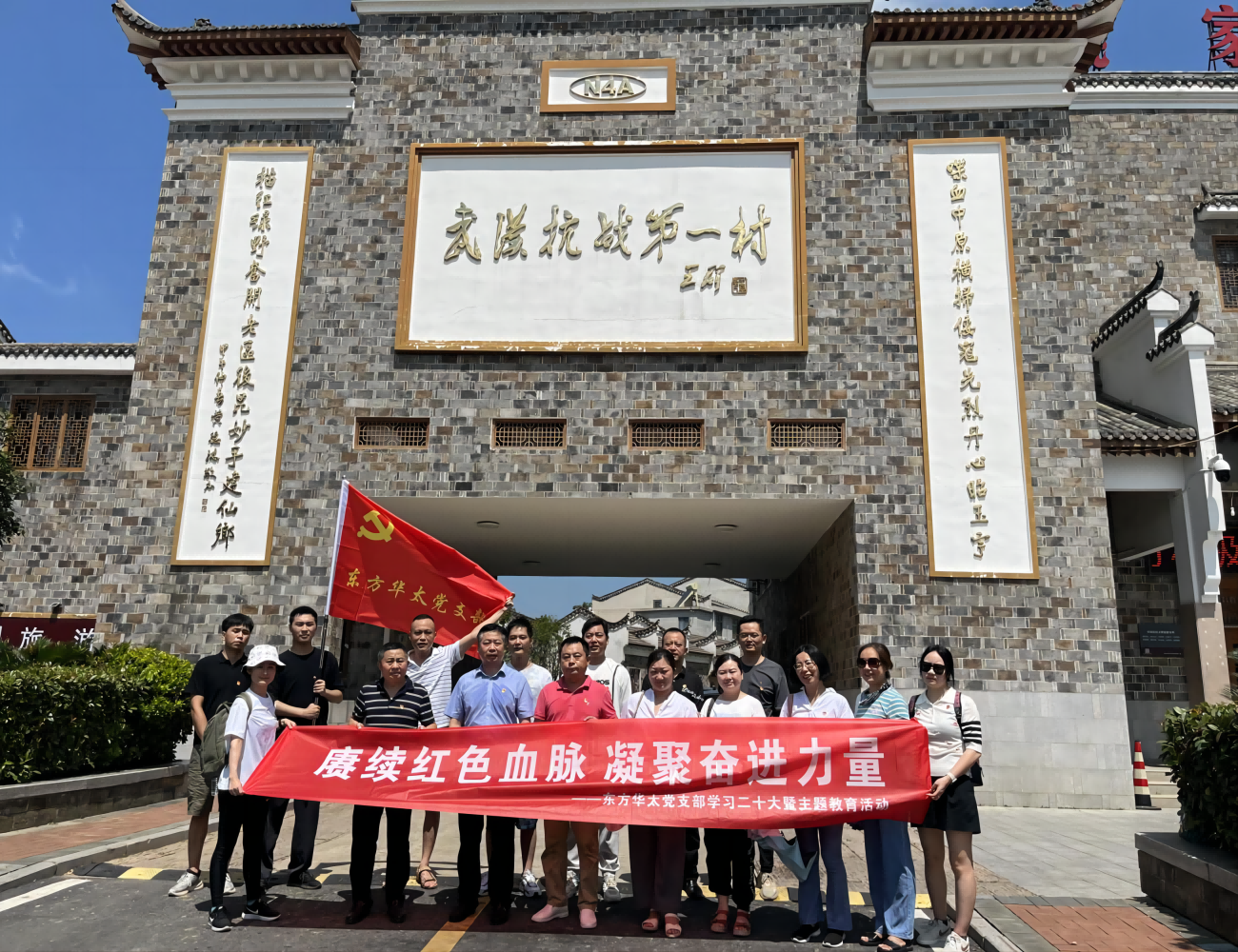 2023年8月5日,黨支部結(jié)合企業(yè)特點(diǎn)和支部工作安排,認(rèn)真落實(shí)黨支部主題黨日“5+N”模式,創(chuàng)新黨史學(xué)習(xí)教育載體,組織全體黨員、入黨積極分子代表等前往武漢抗戰(zhàn)第一村---姚家山新四軍第五師機(jī)關(guān)舊址紅色教育基地,開(kāi)展“賡續(xù)紅色血脈 凝聚奮進(jìn)力量”學(xué)習(xí)二十大暨主題“沉浸式”紅色教育活動(dòng)。“行走黨課”作為理論研習(xí)的重要載體,通過(guò)大家喜聞樂(lè)見(jiàn)的方式推進(jìn)偉大建黨精神內(nèi)化于心、外化于行,共同締造出了“可見(jiàn)”、“可讀”、“可聽(tīng)”的行走路線。感受革命奮斗歷程,傳承紅色基因,營(yíng)造見(jiàn)賢思齊、比學(xué)趕超的濃厚氛圍。