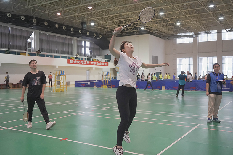 羽毛球賽場上,隊員們盡顯風(fēng)采,揮舞著充滿力量的臂膀,將高遠(yuǎn)球、扣殺、劈殺、吊球等各路球技展現(xiàn)的淋漓盡致。在場上,隊員們不畏強敵,賽出了斗志,賽出了水平。揮舞吧,有力的臂膀,向上吧,燃燒的青春!